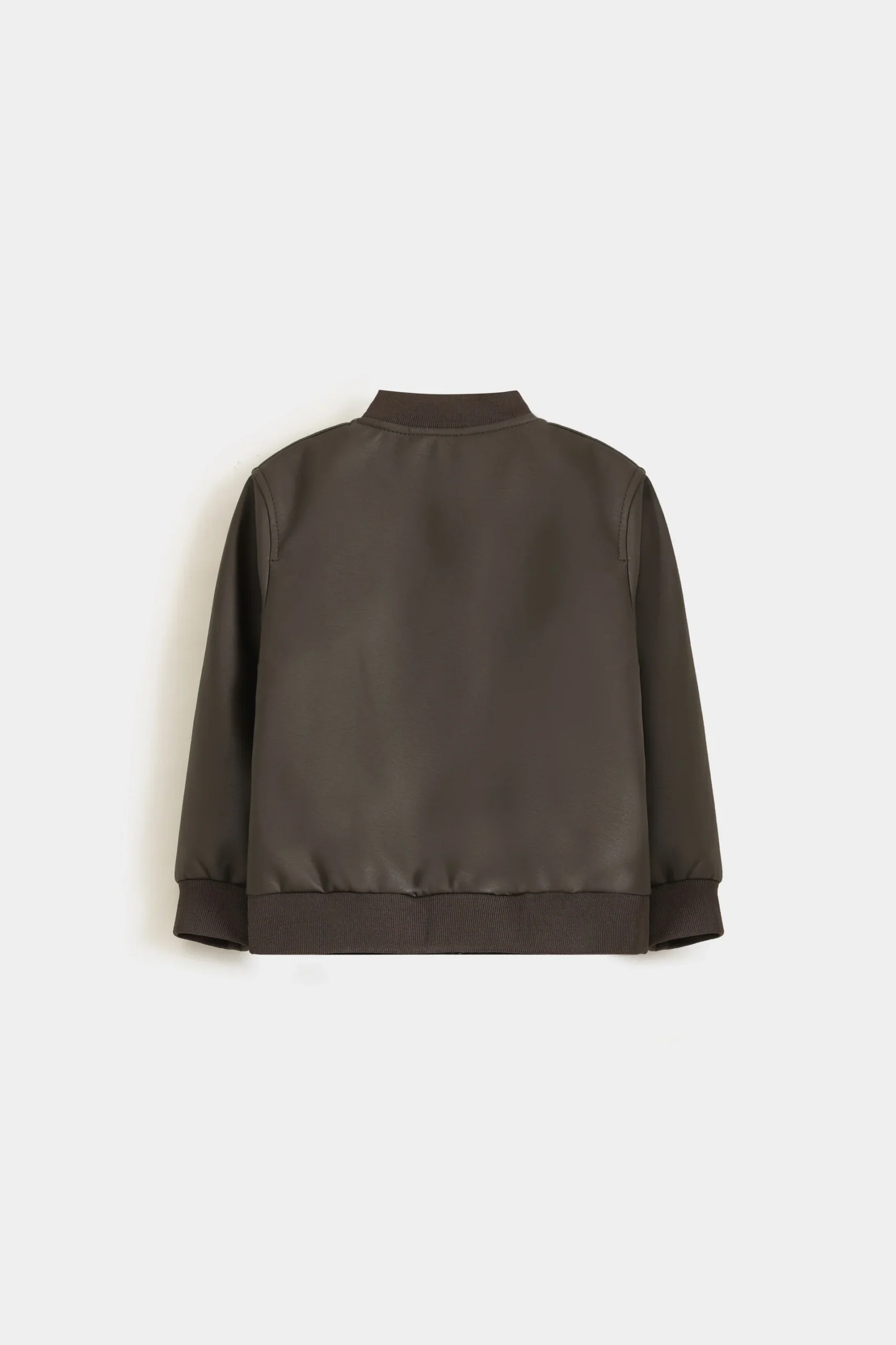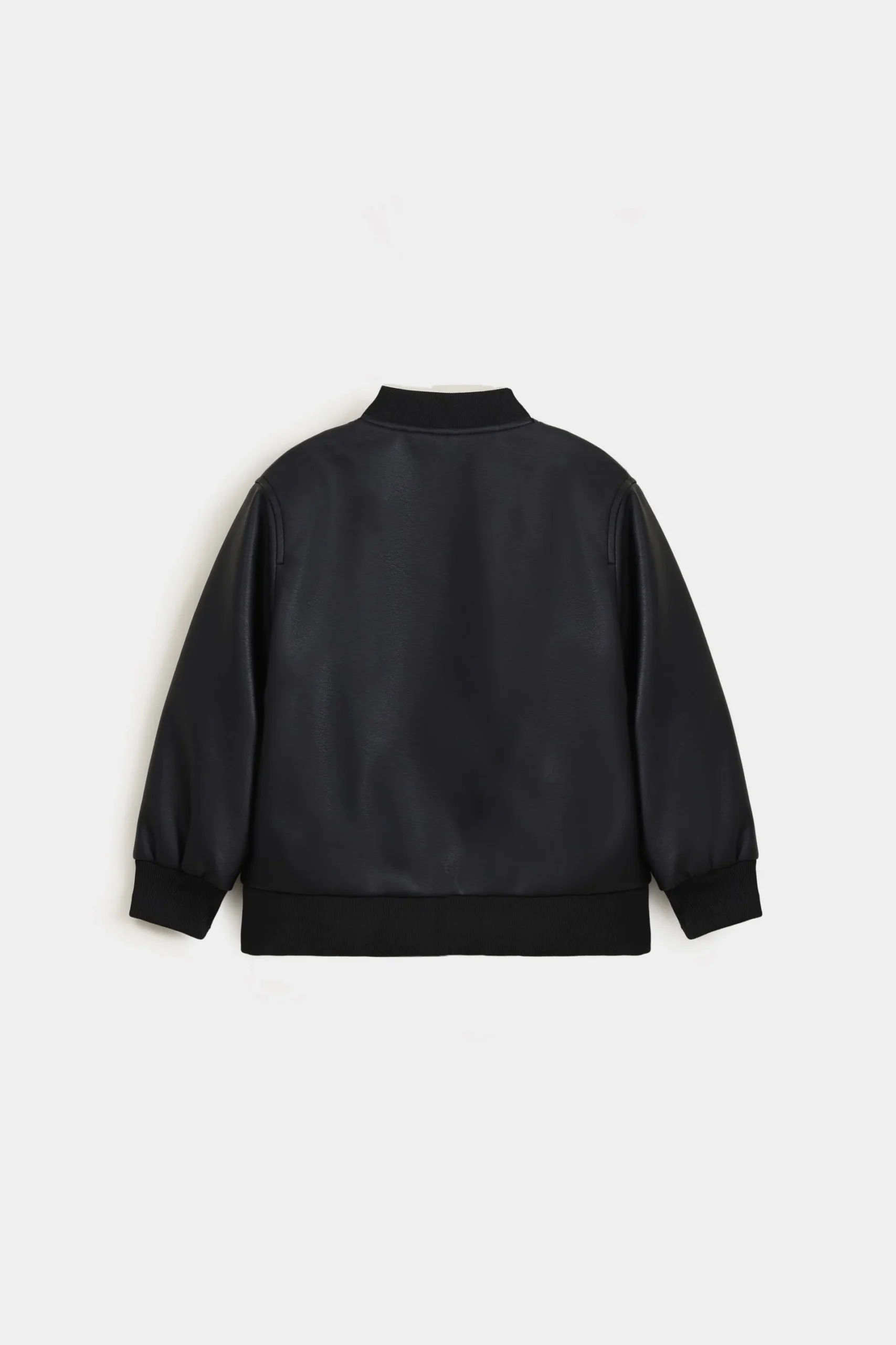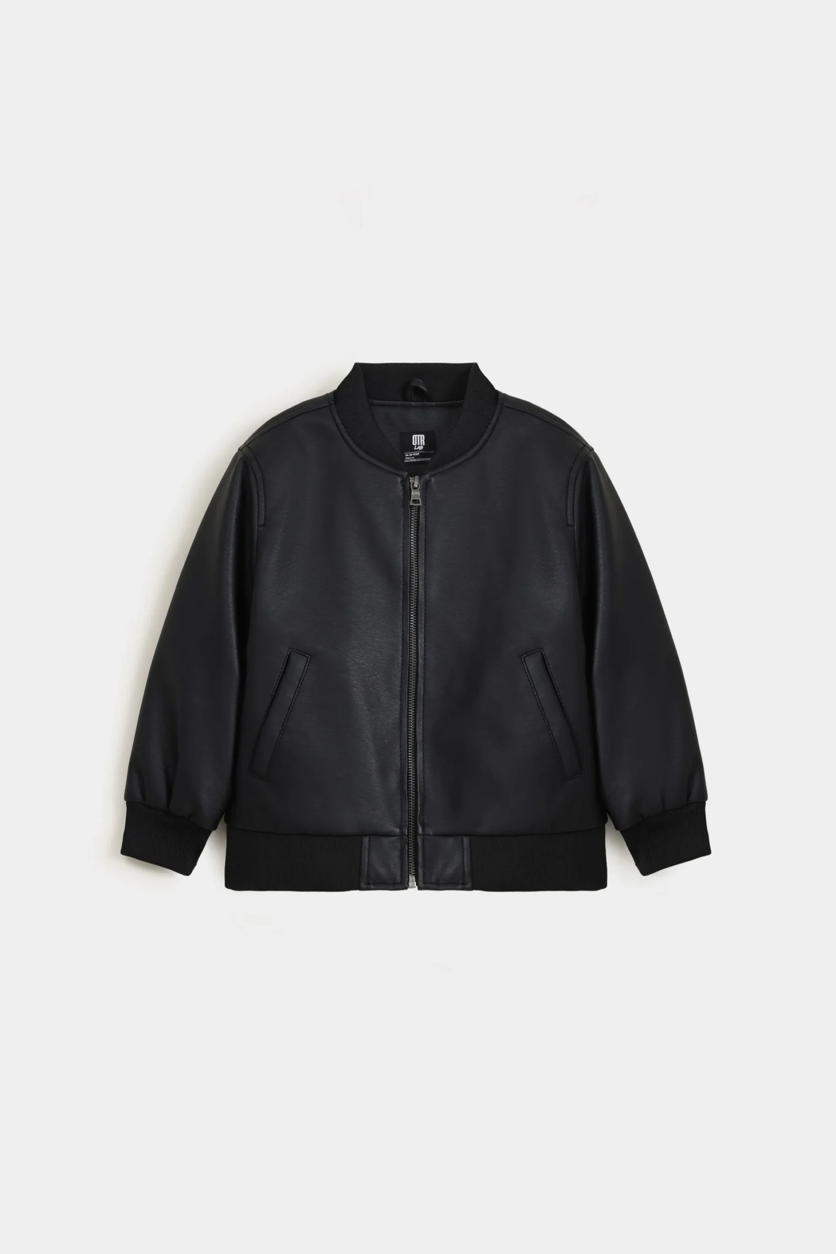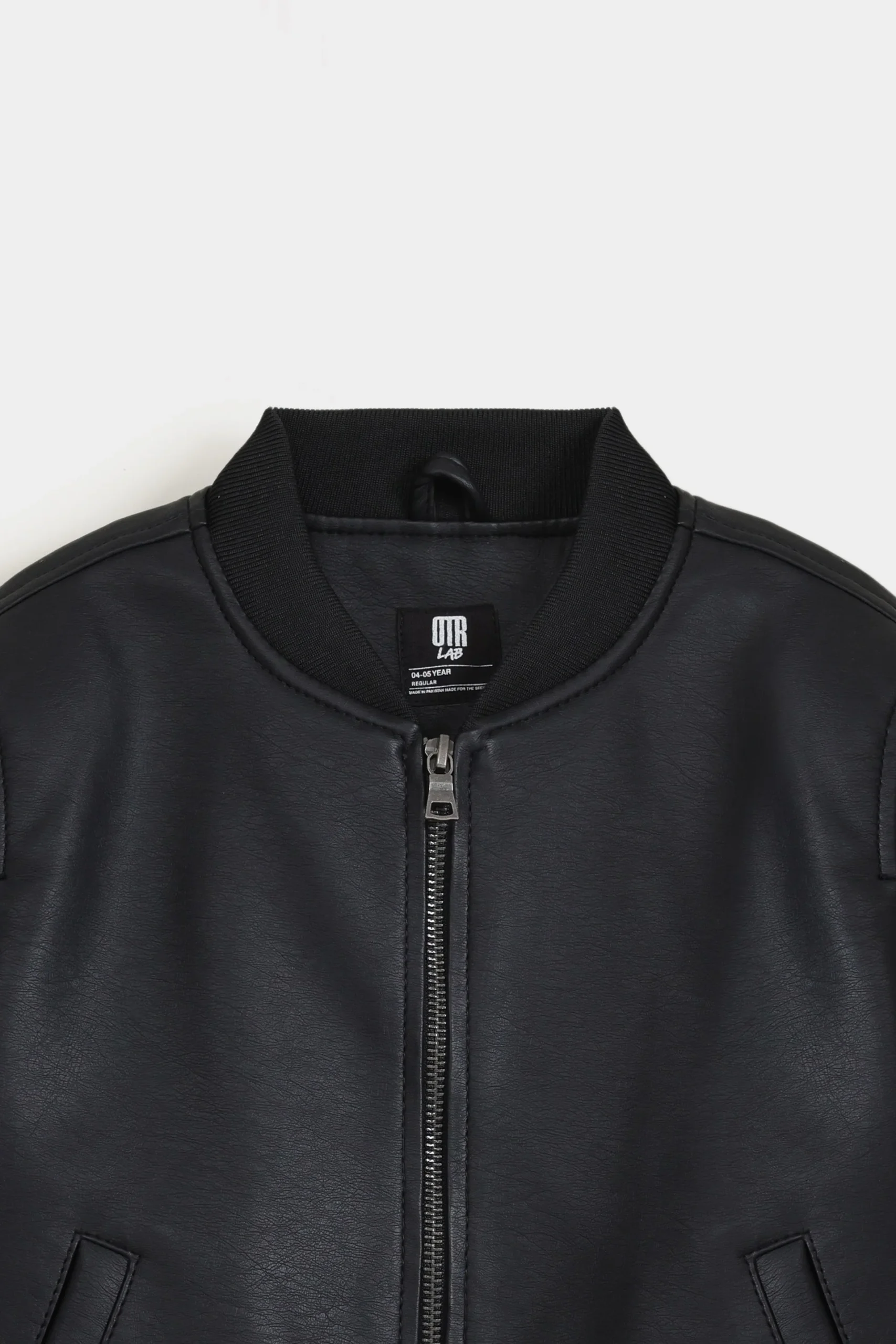 Level up your style with this Faux Leather Bomber Jacket, designed for a sleek and modern look. Featuring a front zip closure, band collar, and elasticated cuffs and hem, it offers a comfortable yet edgy fit. Complete with two practical welt pockets for your essentials, this jacket is the perfect blend of style and functionality—an essential upgrade for any wardrobe.