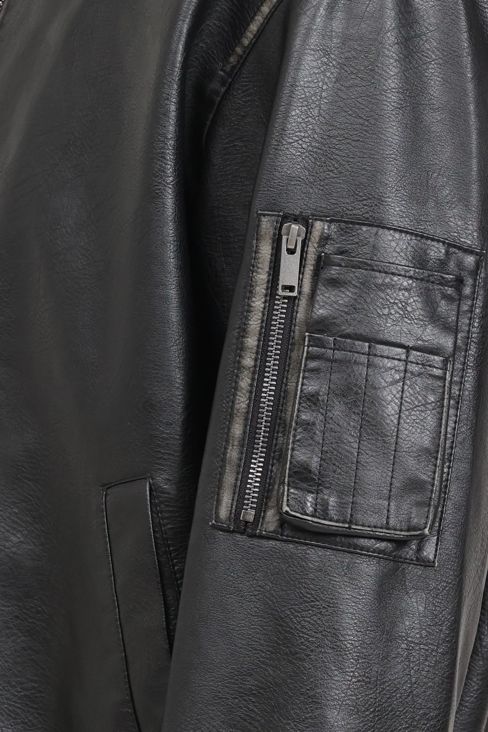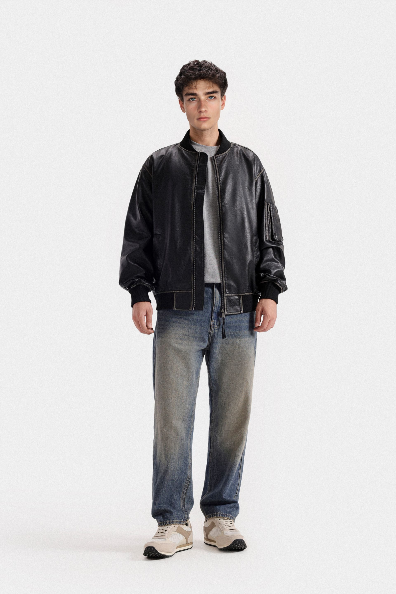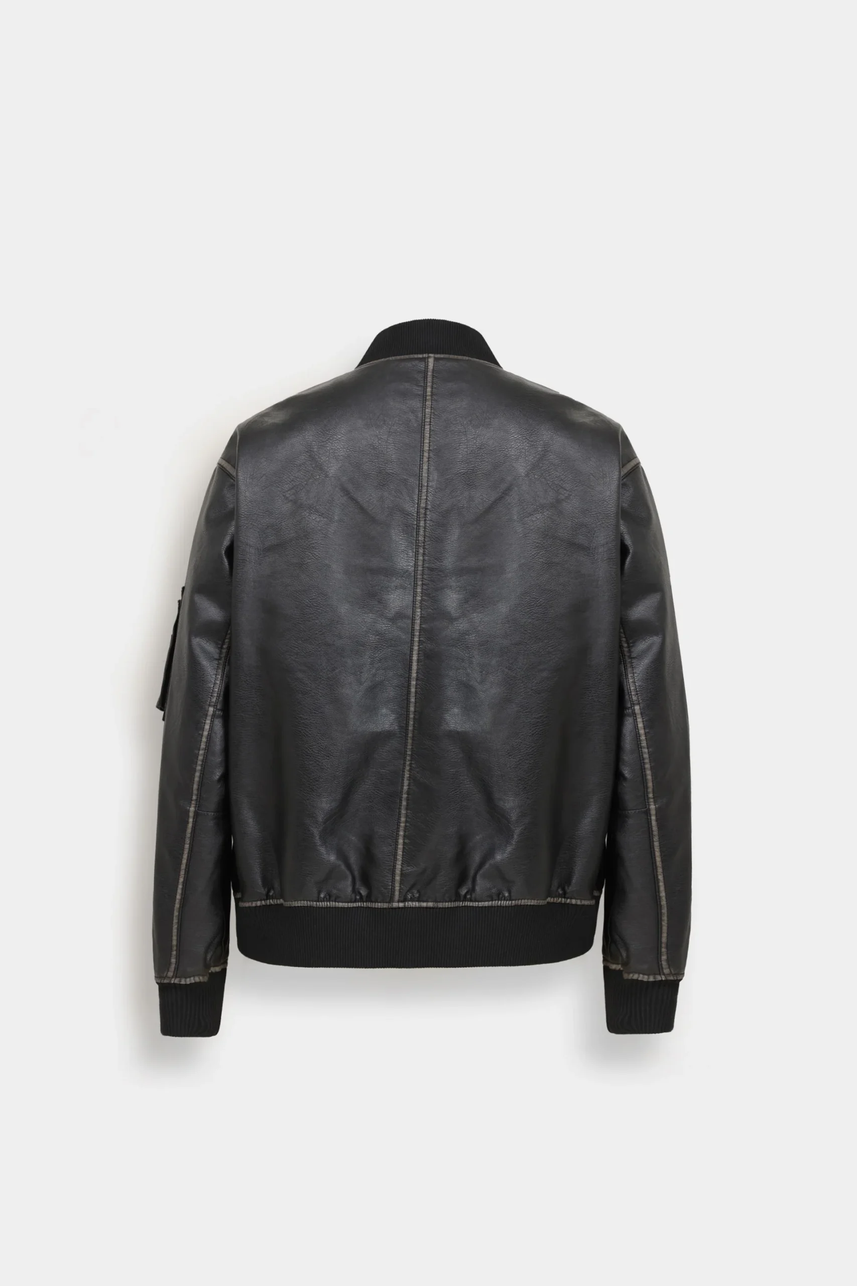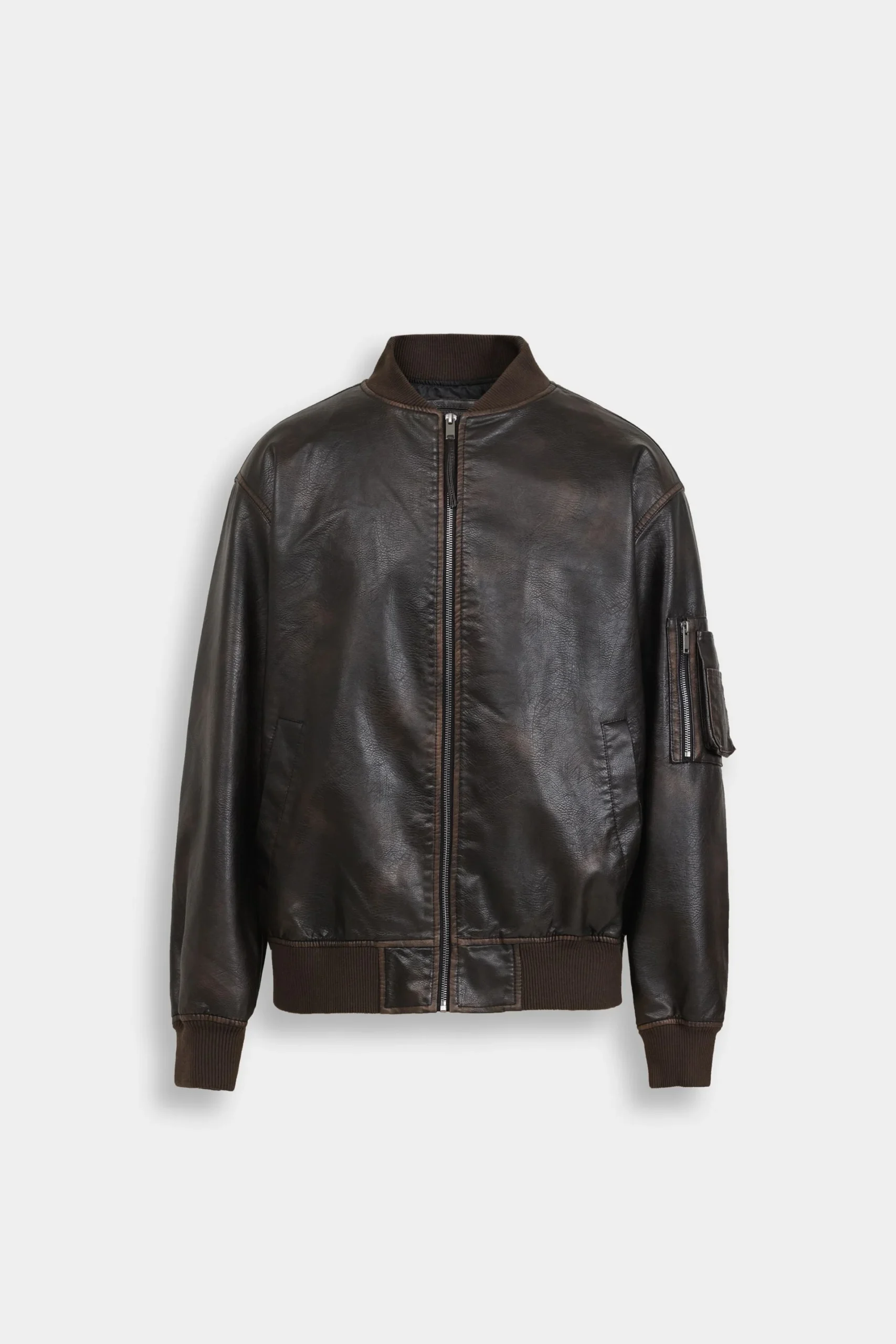 Upgrade your outerwear collection with this sophisticated faux leather bomber jacket. Made from high-quality synthetic leather, it offers a sleek, polished look while ensuring all-day comfort. The clean zip-up front allows for easy styling, complemented by full-length sleeves for a refined finish. A functional sleeve pocket adds a touch of modern utility without compromising its streamlined design. Ideal for layering over both casual and smart-casual outfits, this versatile jacket moves effortlessly from daytime wear to evening style.
