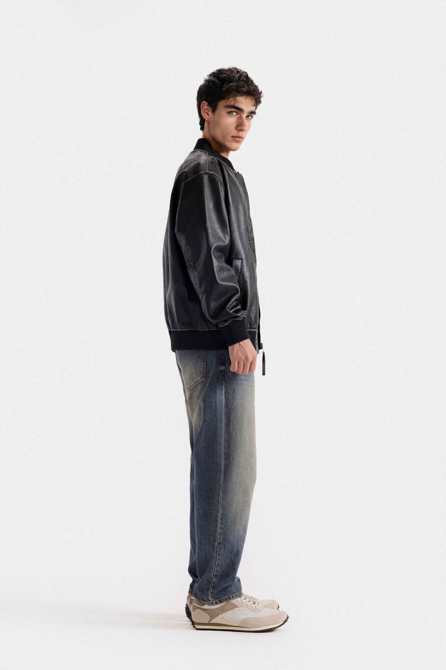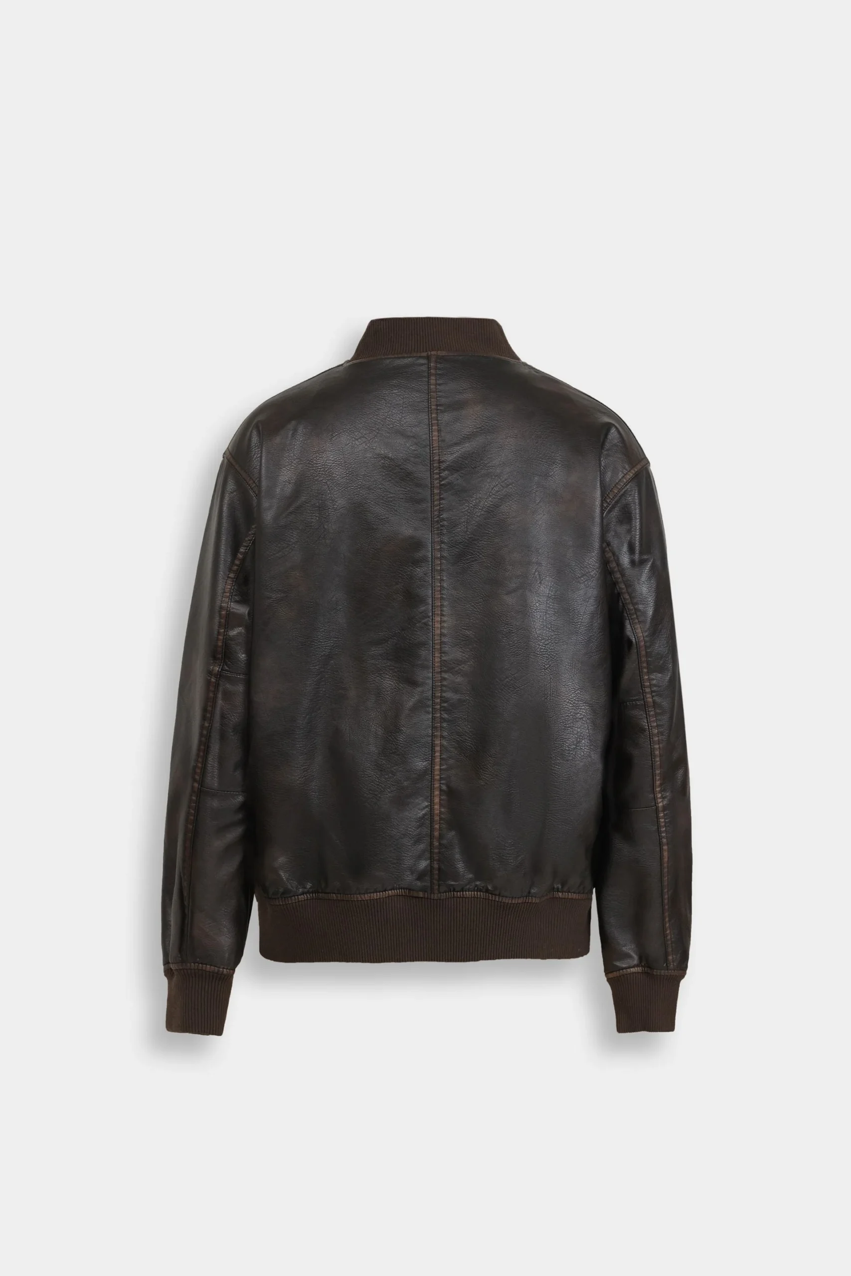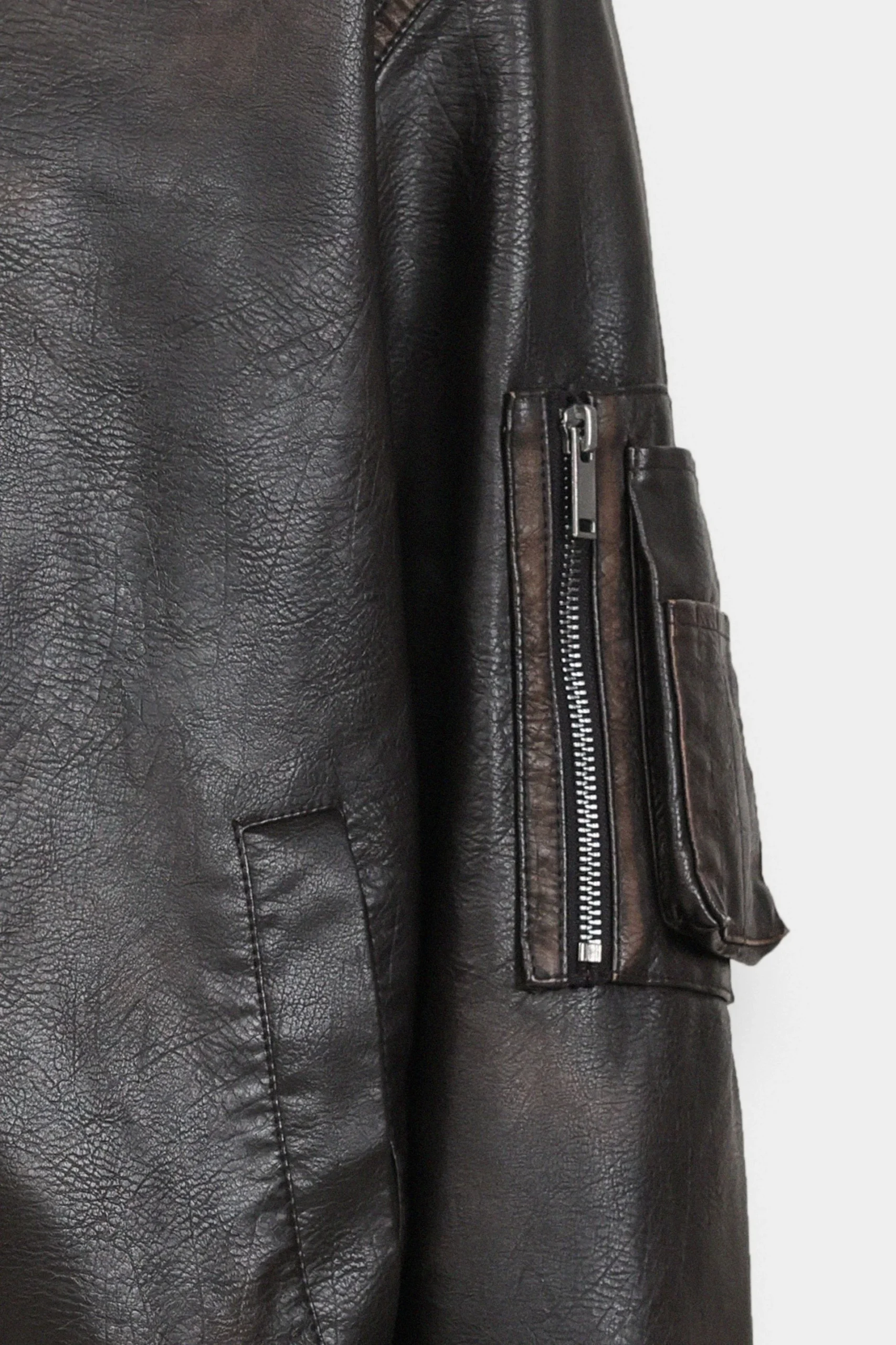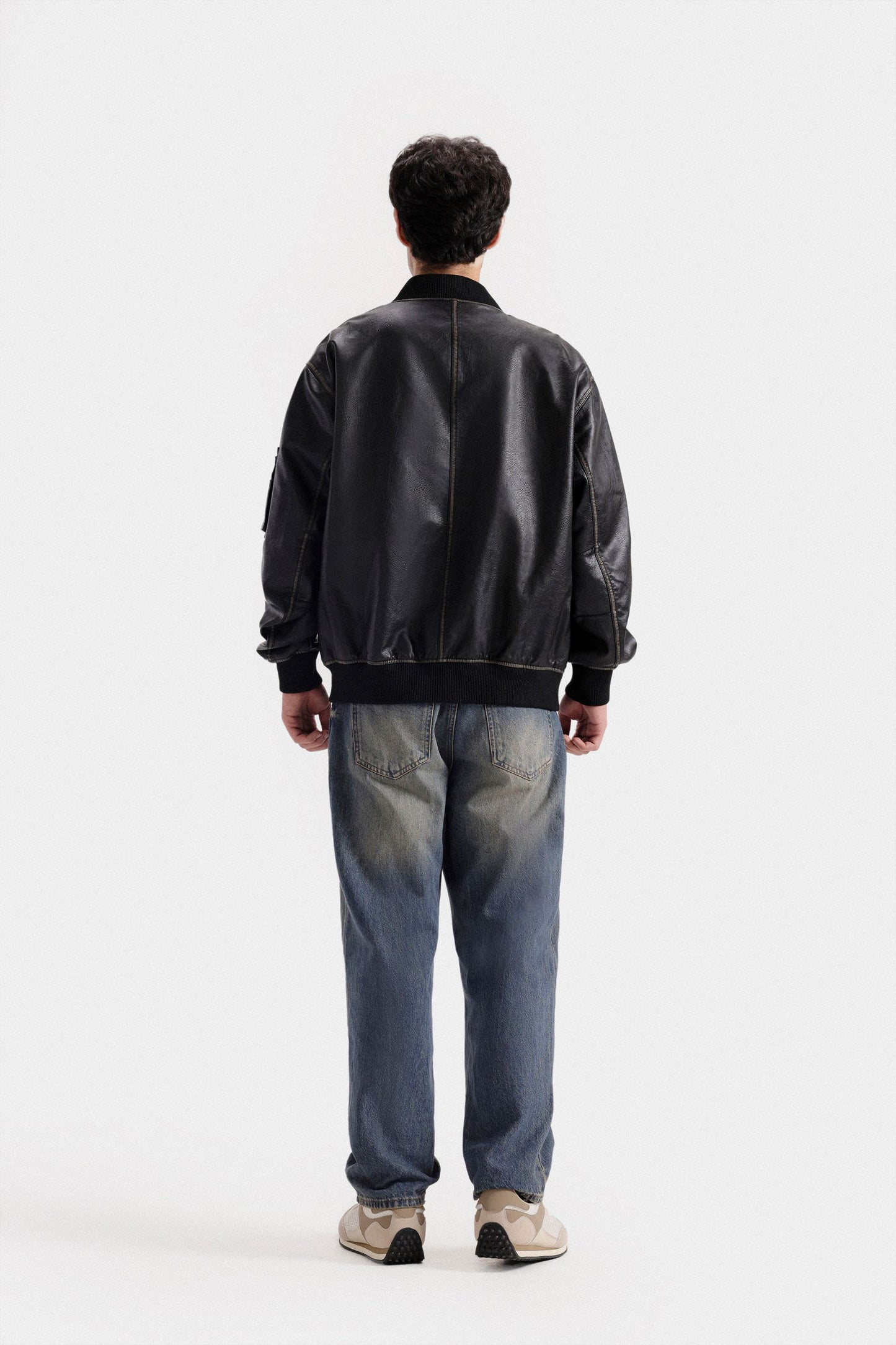 Upgrade your outerwear collection with this sophisticated faux leather bomber jacket. Made from high-quality synthetic leather, it offers a sleek, polished look while ensuring all-day comfort. The clean zip-up front allows for easy styling, complemented by full-length sleeves for a refined finish. A functional sleeve pocket adds a touch of modern utility without compromising its streamlined design. Ideal for layering over both casual and smart-casual outfits, this versatile jacket moves effortlessly from daytime wear to evening style.