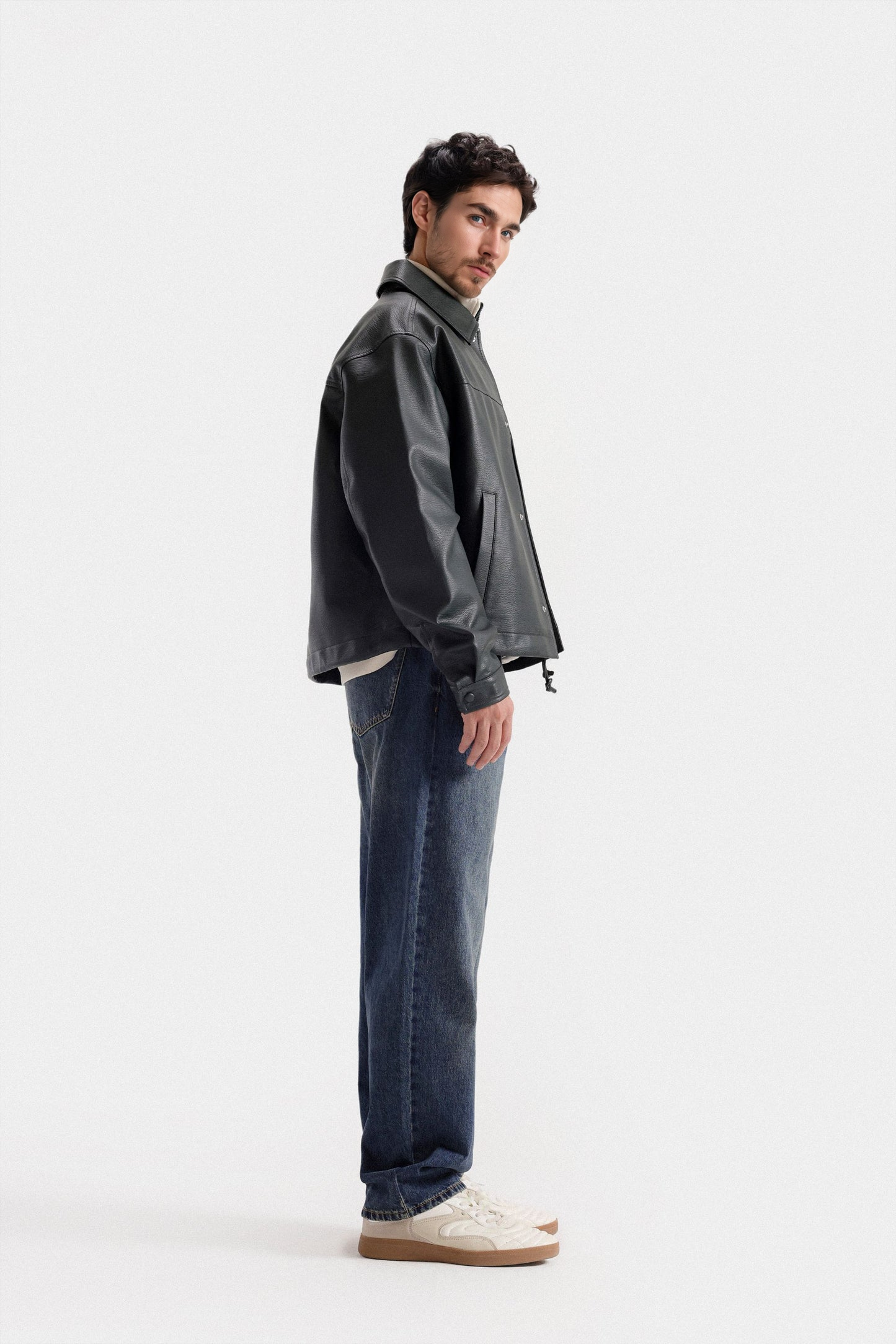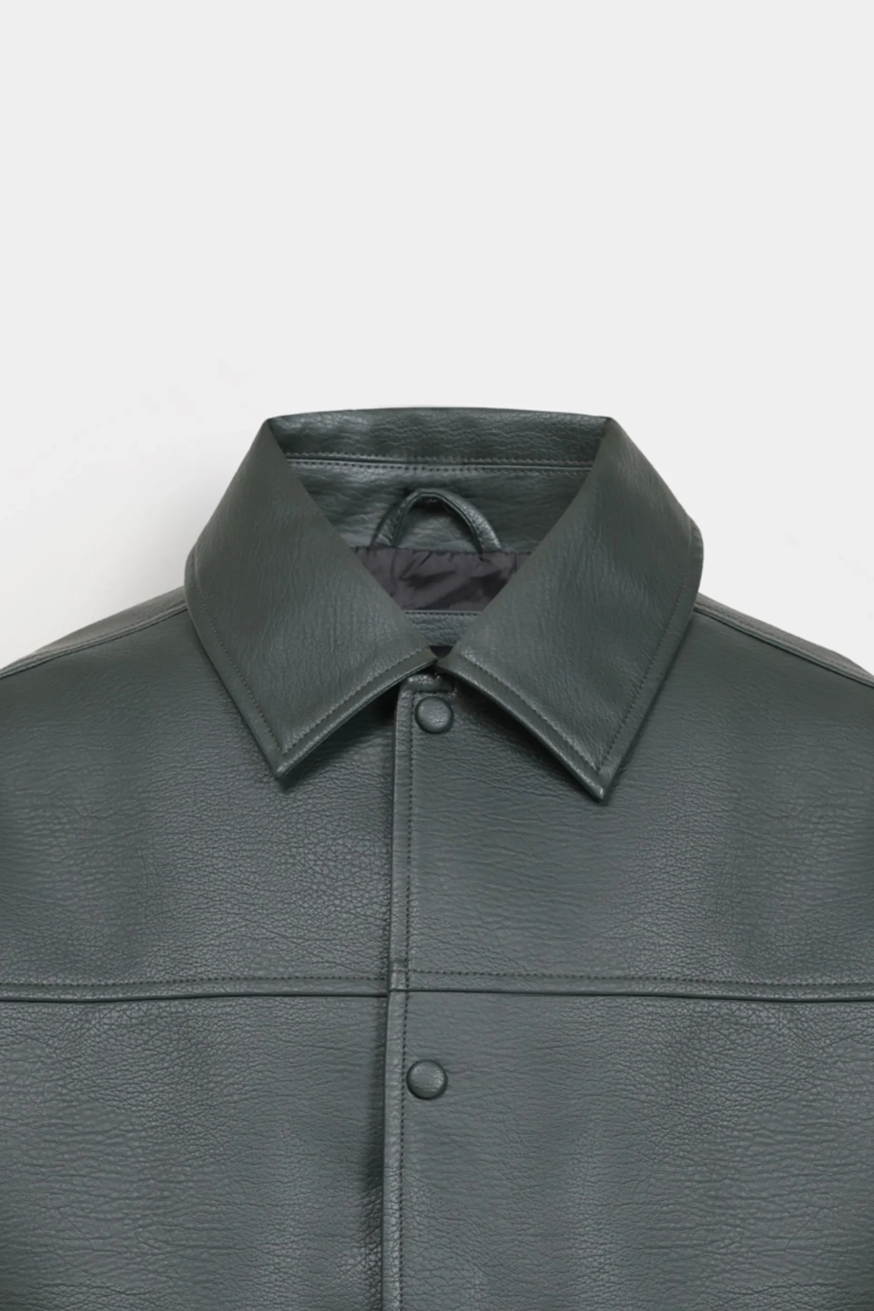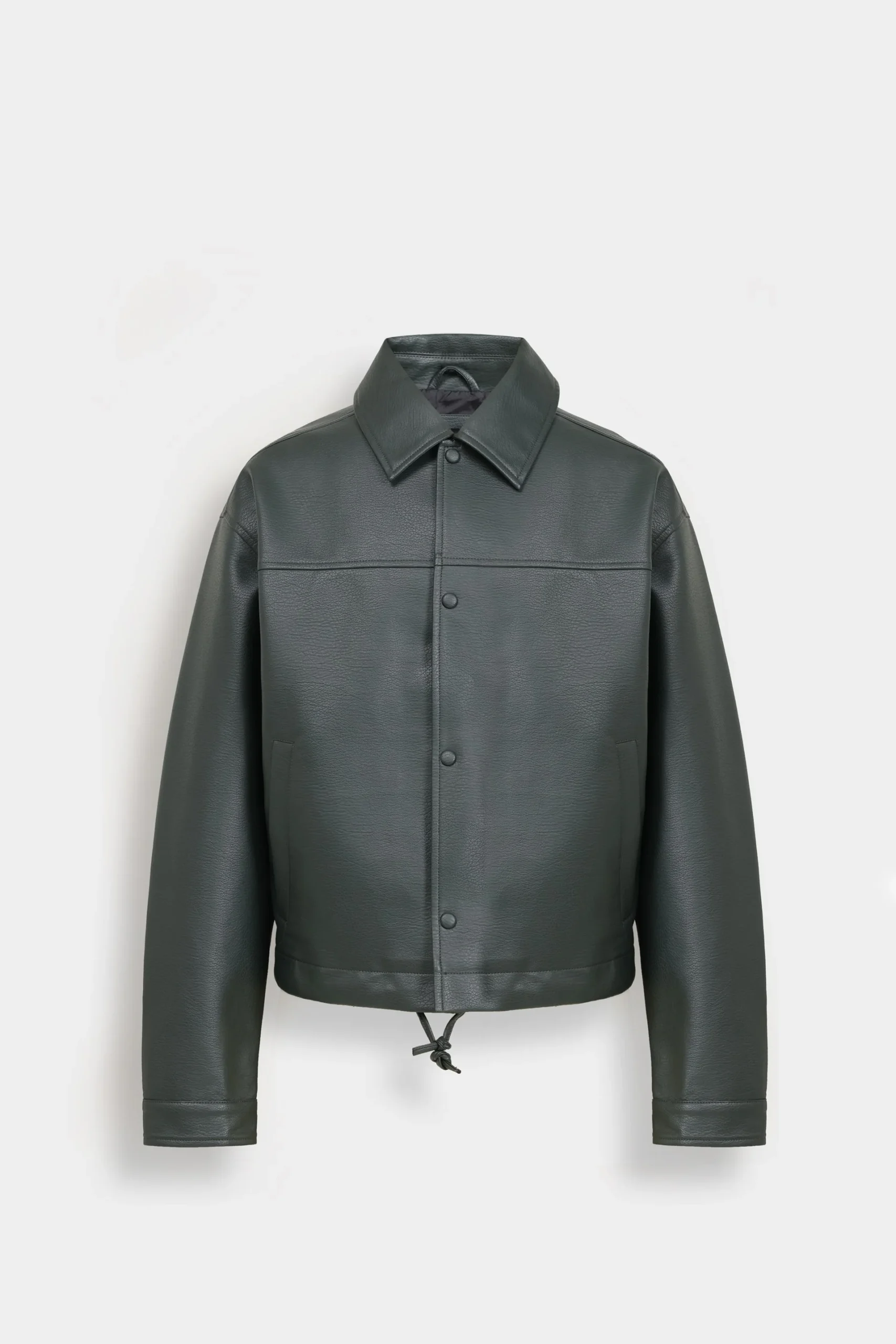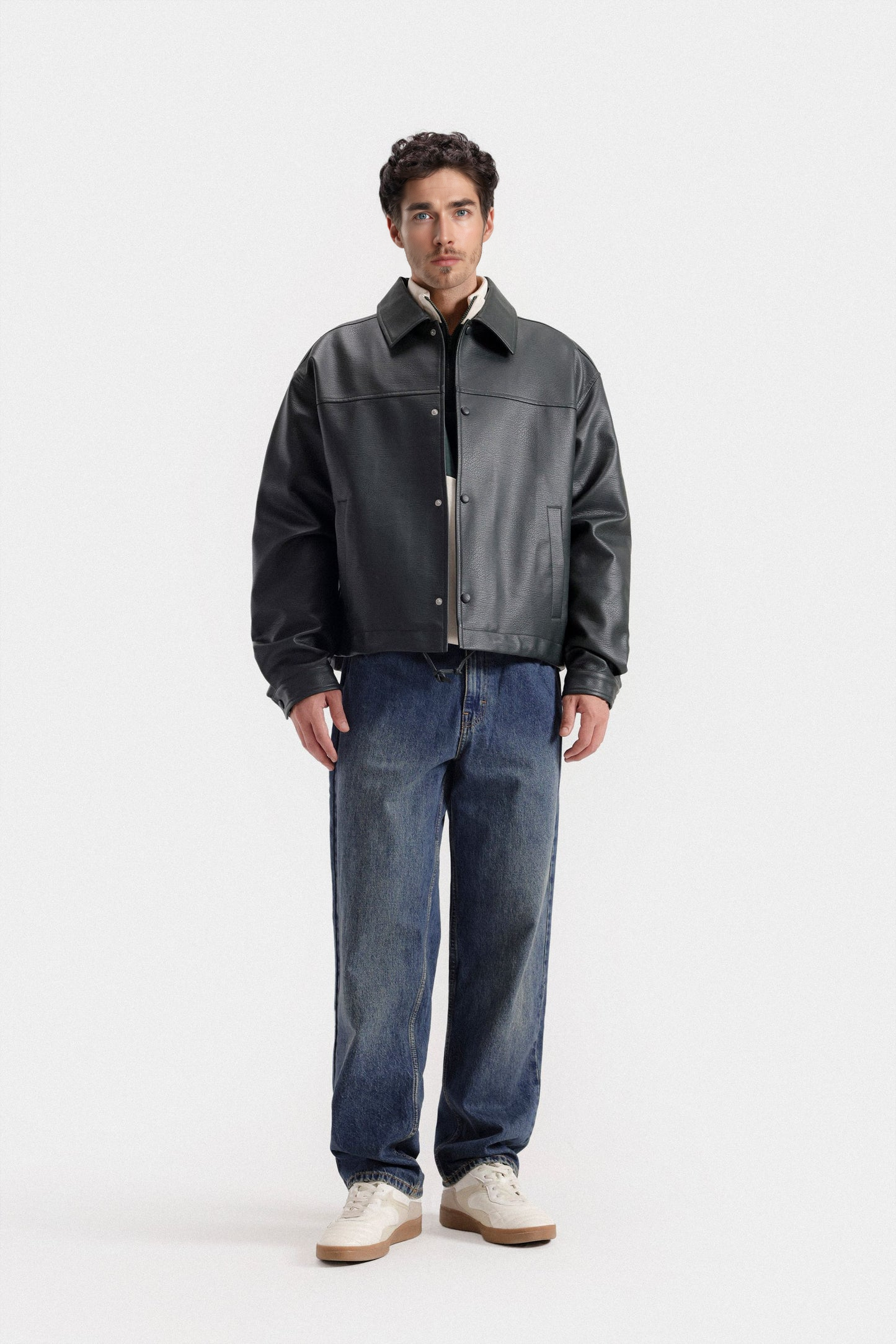 Elevate your outerwear collection with this refined faux leather bomber jacket. Featuring a classic button-up closure and distinctive maple collar, it delivers timeless style with contemporary edge. The full sleeves provide complete coverage, while two strategically placed side welt pockets offer practical functionality without compromising the sleek silhouette.
