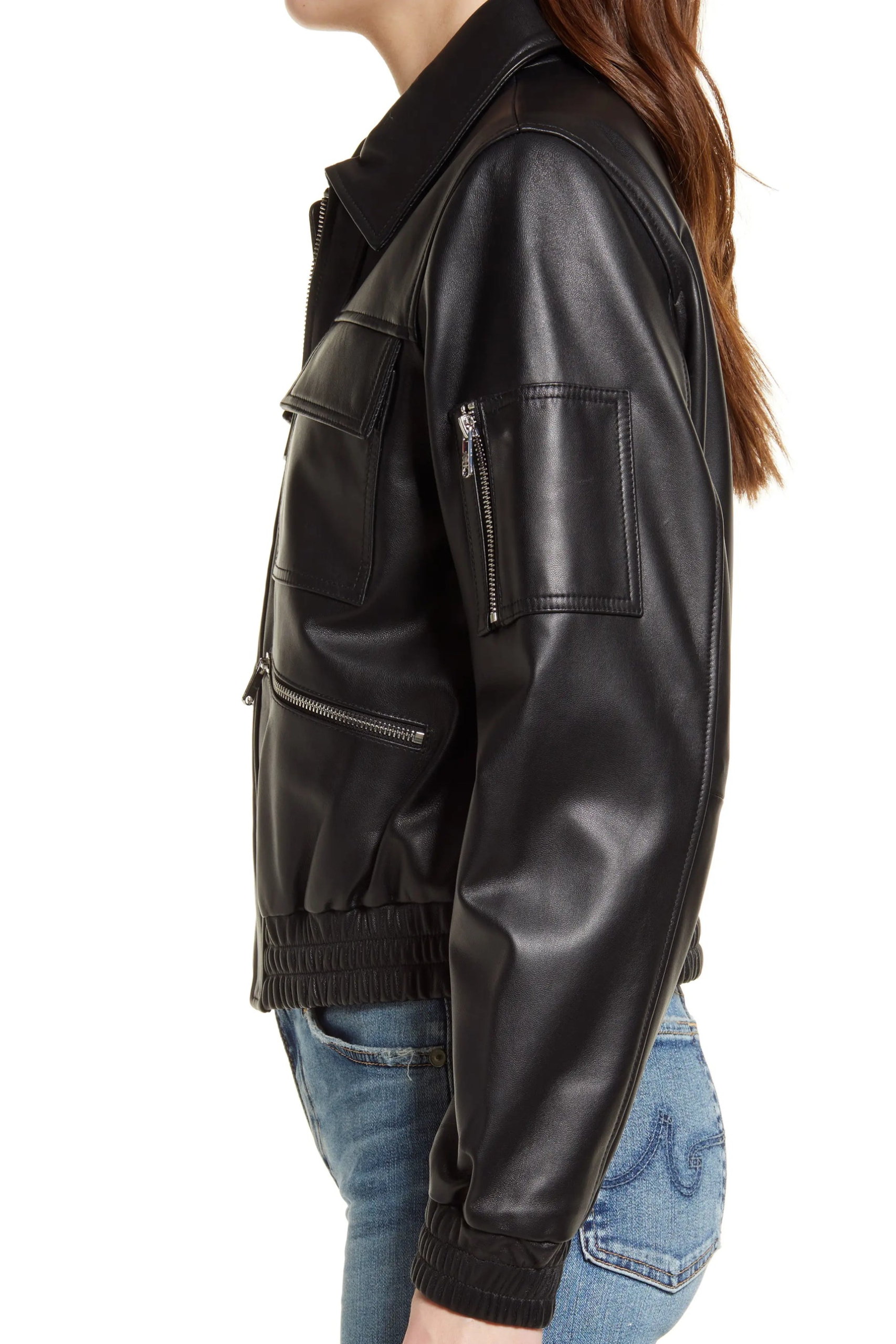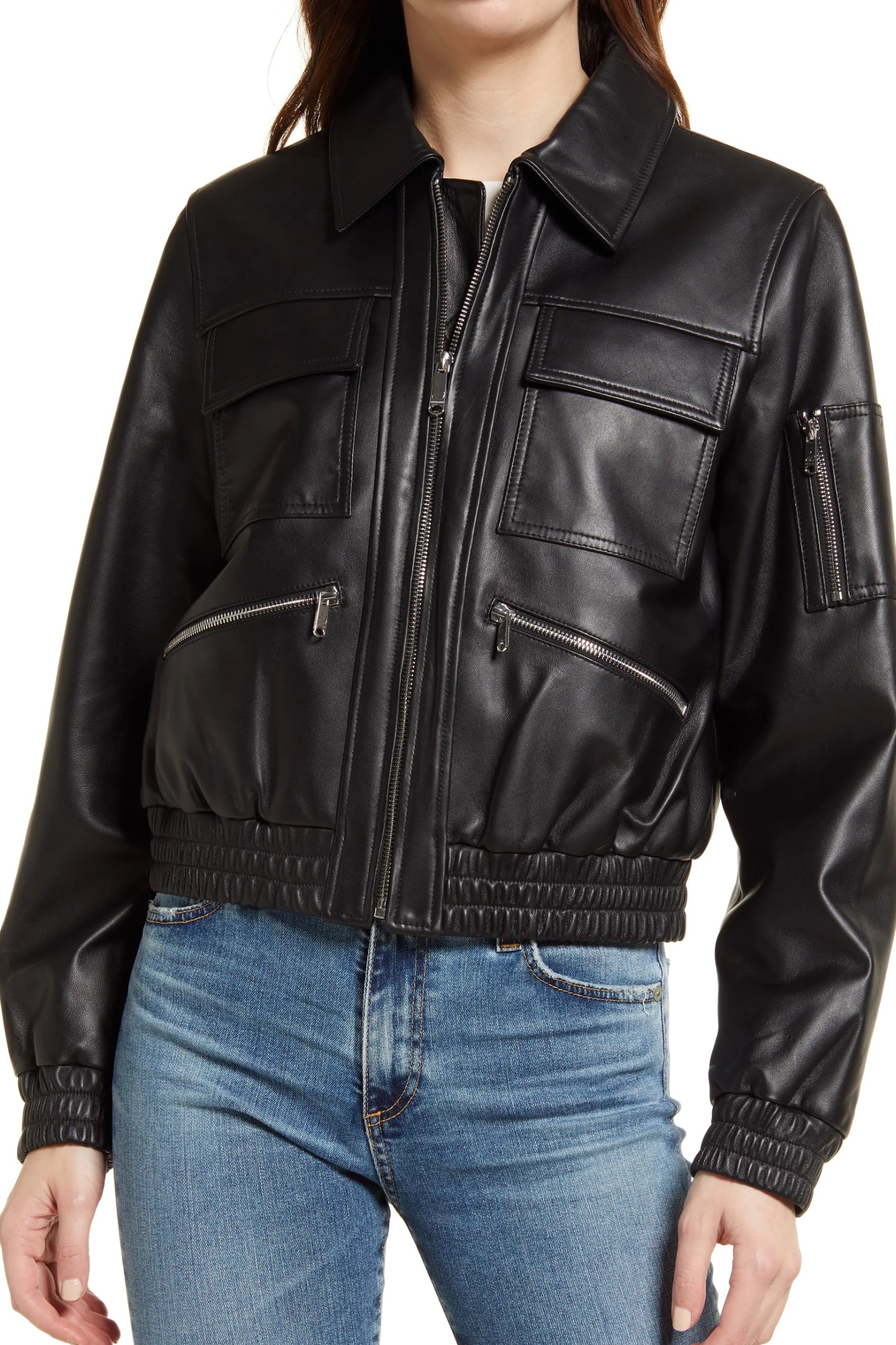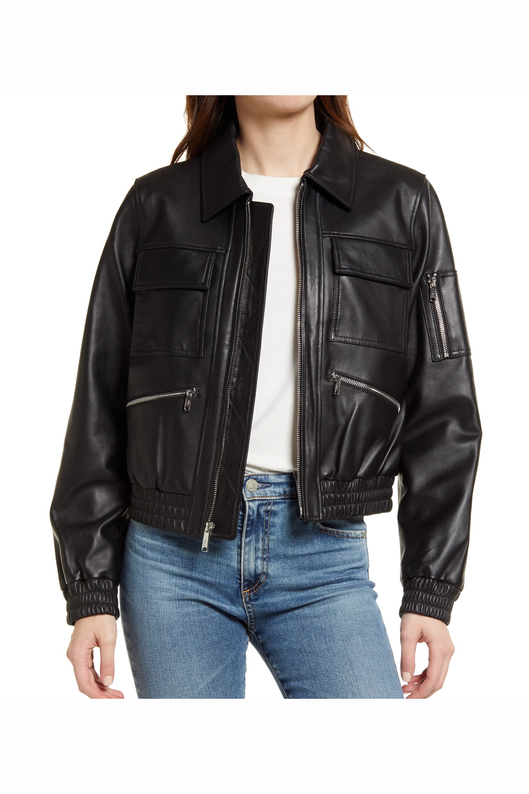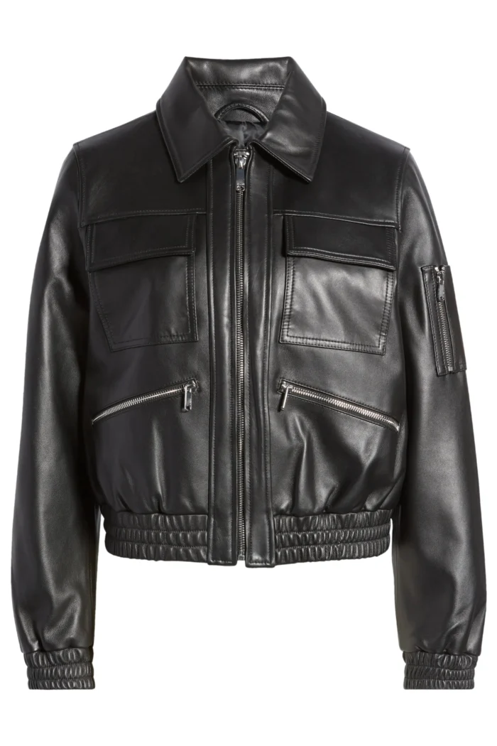 Black Leather Bomber w/ Spread Collar – Aria
