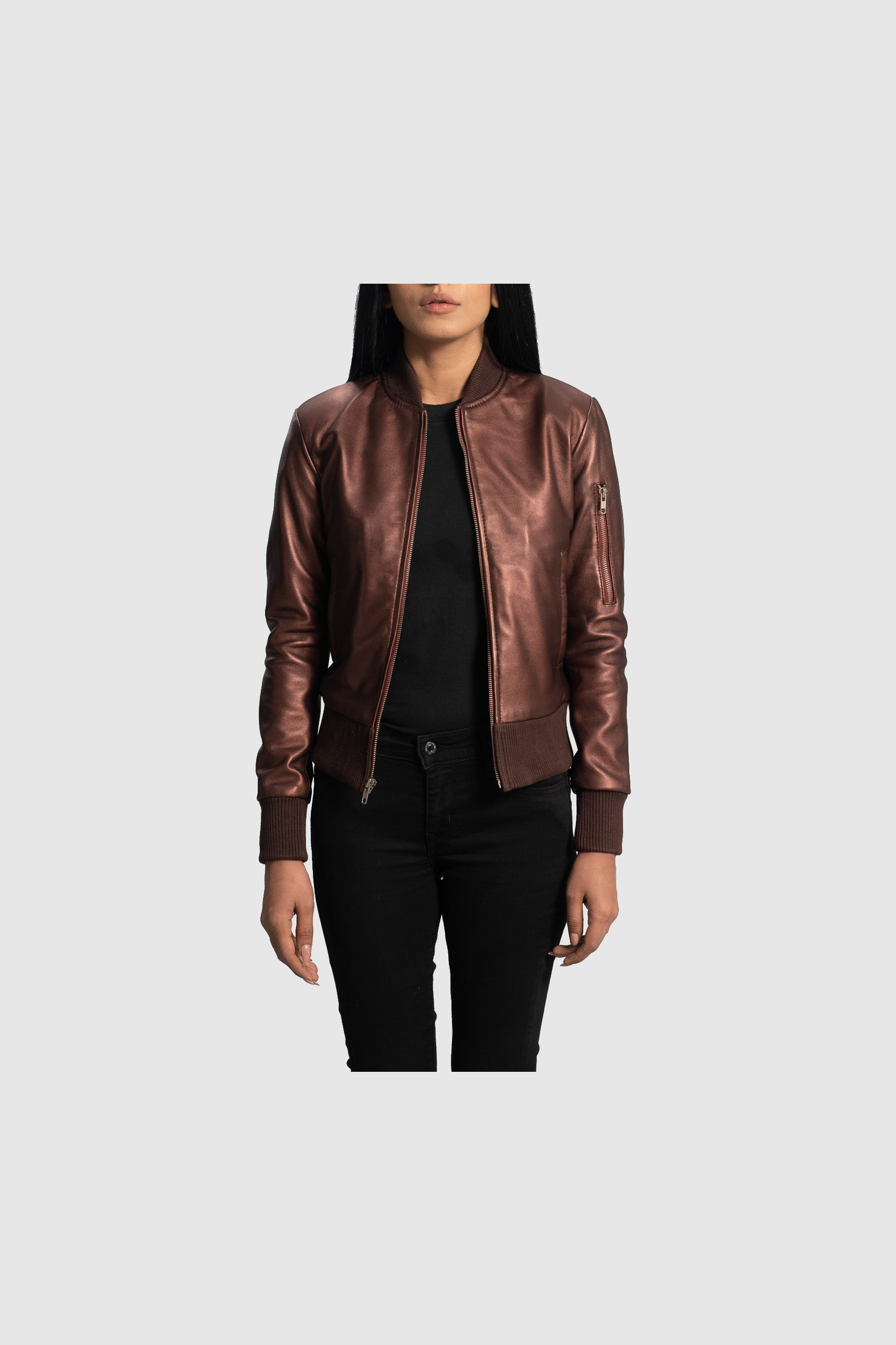 Looking for Reida Maroon Leather Bomber Jacket in USA?